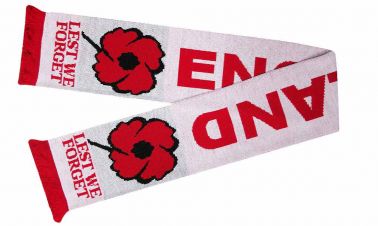 This England Remembrance scarf has a Poppy & Lest We Forget at each end and is ideal for all England fans. 100% acrylic